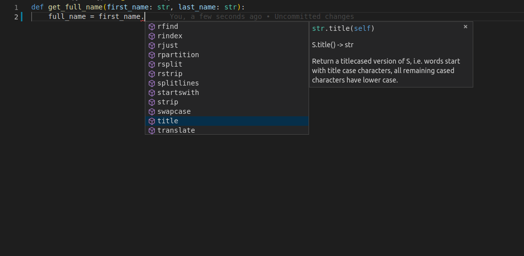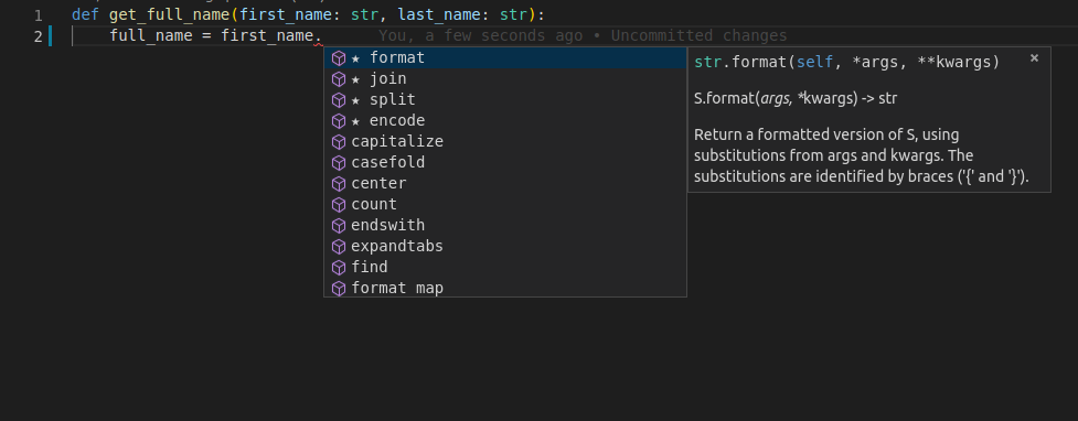 Et pourtant, l'éditeur sait qu'elle est de type str et pourra donc vous aider à l'utiliser.